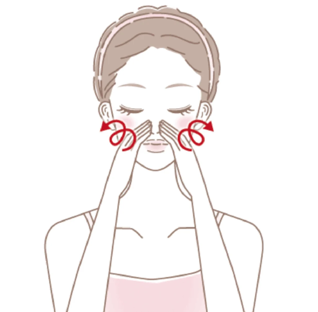 なかなか取れない角栓はくるくるとやさしくマッサージするようになじませると効果的に汚れを落とすことができます。